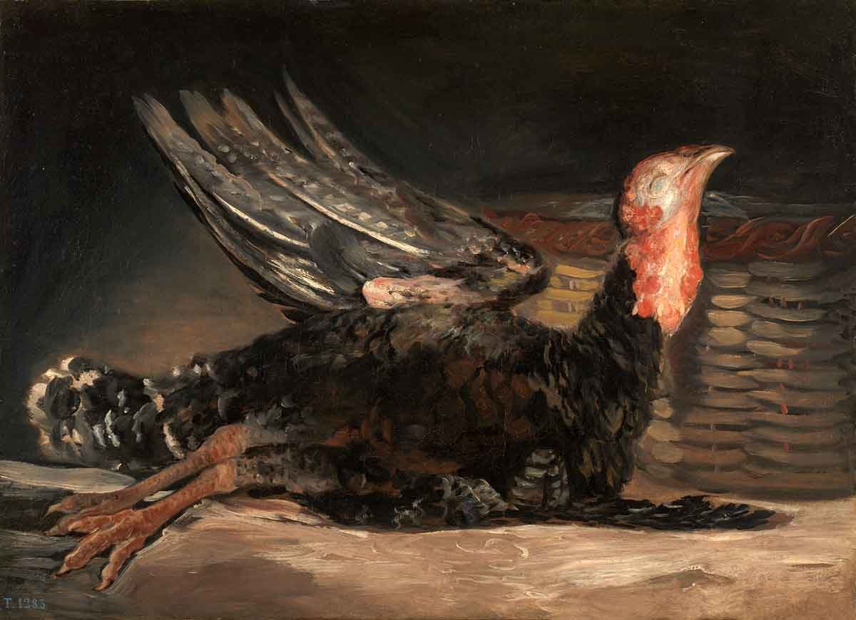 En el Museo del Prado hay al menos dos bodegones de Francisco de Goya que forman un conjunto singular dentro de su obra: “Aves muertas” y “Un pavo muerto”. Ambos están documentados como parte de una serie de naturalezas muertas que figuraban entre sus bienes tras la muerte de su esposa en 1812, y hoy se conservan en la colección del Prado.