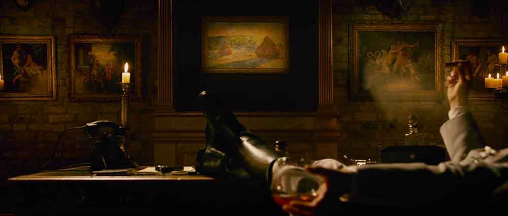 En el siguiente fotograma, Goering disfruta admirando unos cuadros, en el centro se aprecia “Almiares al atardecer”, del resto de los cuadros que aparecen en este fotograma, solo hemos podido identificar uno, el que está a la derecha de “Almiares al atardecer.